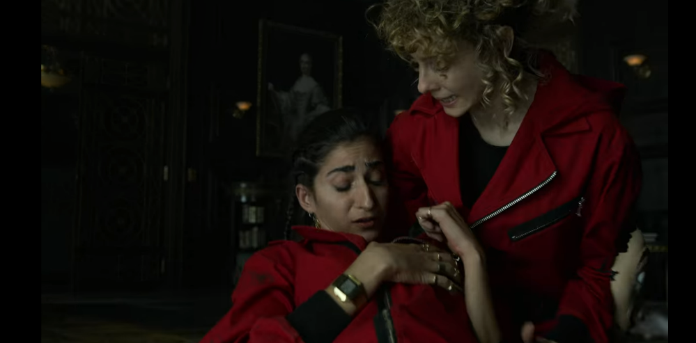 마음이 흔들린 나이로비는 창가 앞에서 자신의 아이가 진짜 밖에 왔는지 살피다가, 경찰의 총에 맞고 목숨이 위태로운 상황에 빠집니다.