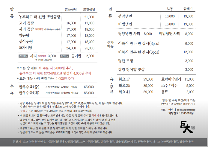 이처럼 다양한 메뉴들이 있지만, 기본 메뉴인 고기 곰탕 한 그릇만으로도 이 집의 명성을 바로 확인할 수 있습니다.